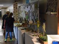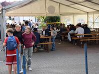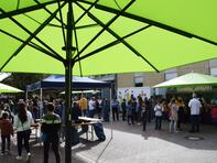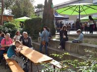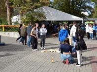 Die Pflanzung dieses Baums leitete zum Fest der offenen Tür über, das sich nahtlos an den Festakt anschloss. Auf dem Schulhof stellte uns die Firma Kadel ein Festzelt zur Verfügung, das allen Gästen bei strahlend schönem Wetter Sonnen- und Windschutz bot. Regen Zuspruch fand unser kulinarisches Angebot. Schülerinnen und Schüler der Oberstufe grillten unterschiedliche Burger, geliefert vom Catering-Service Speeter. Der SEB servierte Kaffee, Tee und von Schüler_innen der Jahrgangsstufe 12 gebackenen Kuchen im Schulcafé. Ergänzt wurde dieses Angebot vom Weingut Sonnenberg für unsere erwachsenen Gäste.