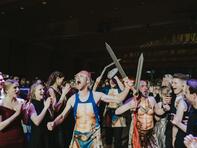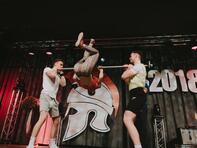 Dazwischen brachten diverse Einlagen kurzweilige Unterhaltung: ein klassisches Männerballett einiger Abiturienten, ein Gladiatorenkampf der Lehrer/-innen, ein Flashmob des Abiturjahrgangs sowie eine Kostprobe sportlicher Fähigkeiten des Leistungskurses Sport.