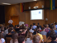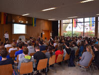 Herr Dr. Heiko Maus vom Deutschen Forschungszentrum für Künstliche Intelligenz beantwortete diese und noch weitere Fragen bei seinem Vortrag in unserer Aula. Dabei zeigte er sehr anschaulich auf, welche IT-Technik bereits heute schon eingesetzt wird, wie z.B. Augmented Reality mit HoloLenses oder automatisierte Bildverarbeitung und wie sehr heute schon Computer den Menschen bei Ihrer Arbeit unterstützen oder auch ersetzen.