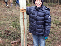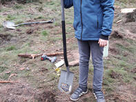 Baumpflanzaktion der fünften Klassen im Schulwald des Leininger-Gymnasiums statt. Bei Temperaturen knapp über dem Gefrierpunkt wurden unsere Schülerinnen und