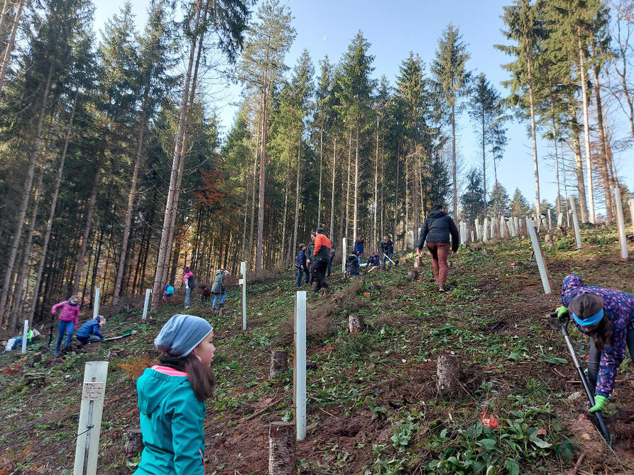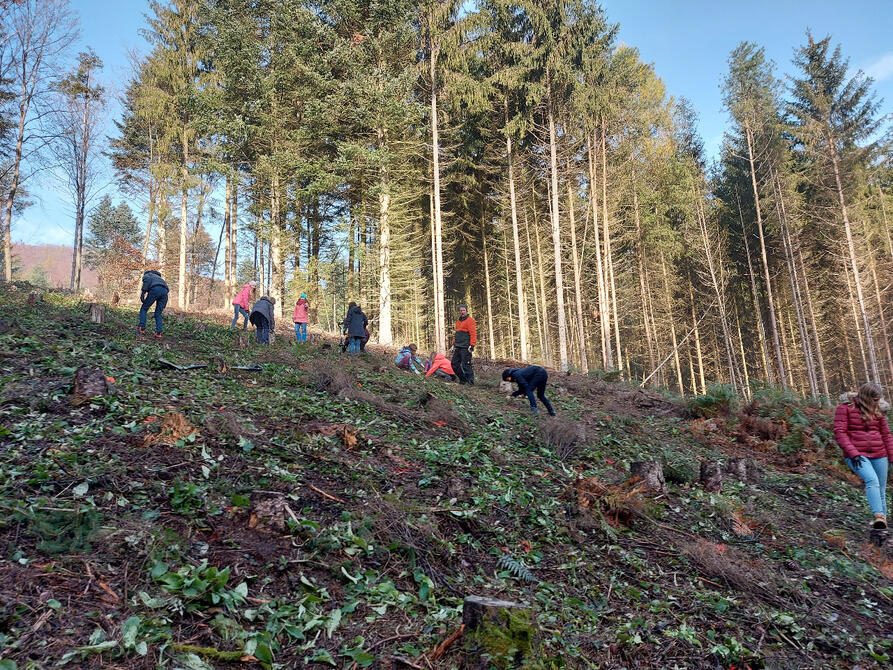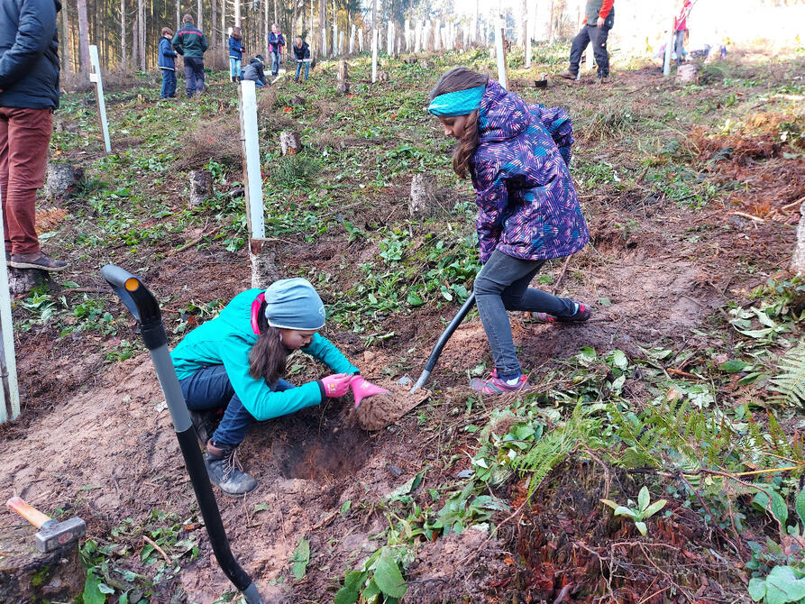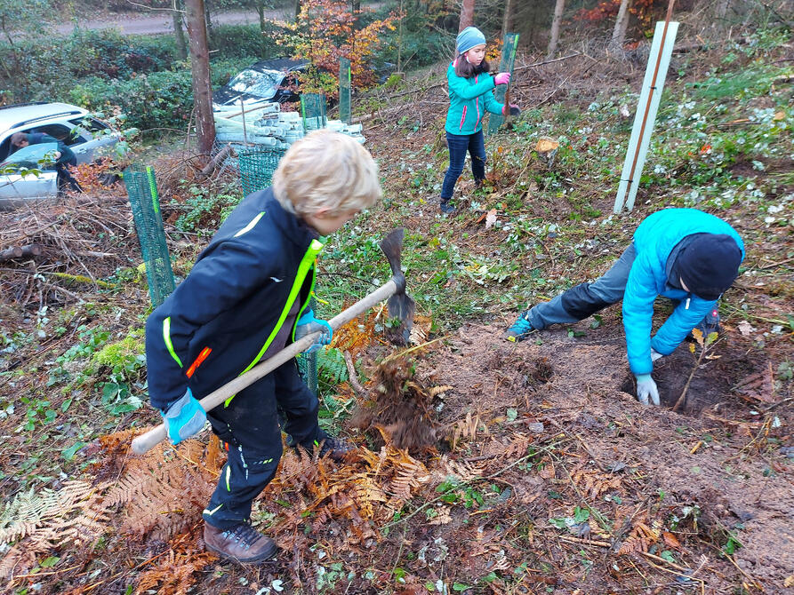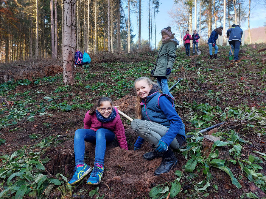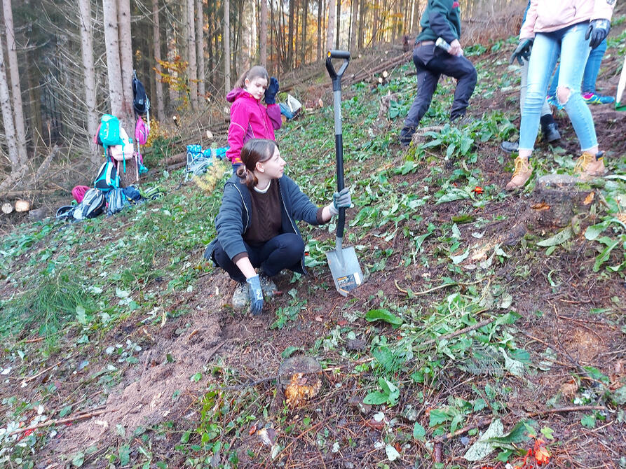 Am Montagmorgen war es Zeit, dass die Klasse 5e mit ihren Tutoren in den Schulwald ging. Wir trafen uns am Haupteingang unseres Gymnasiums. Als wir komplett waren, holte uns der Bus ab und brachte uns nach Höningen in den Schulwald. Dort angekommen wanderten wir zur Baumpflanzstelle. Dort aßen und tranken wir erstmal ausgiebig. Anschließend trafen wir den Förster, der uns erklärte, wie das mit dem Bäume pflanzen funktioniert. Danach machten wir uns alle an die Arbeit. Zur Kennzeichnung durfte jeder ein Schild mit seinem Namen anbringen. Als die Arbeit getan war, machten wir uns auf den Rückweg zum Parkplatz, wo uns der Bus abholte und zurück zur Schule brachte.