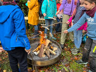 Aber nicht nur das Lernen außerhalb des Klassenraums wurde wieder gefördert, sondern auch das Gemeinschaftsgefühl innerhalb der Klassen beim anschließenden Mittagessen an unserer Schulwaldhütte gestärkt !