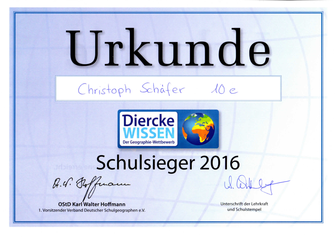 Interessierte Schülerinnen und Schüler der 7. bis 10. Klassen des Leininger-Gymnasiums nahmen Anfang Januar sehr erfolgreich am Geographiewettbewerb Diercke Wissen 2016 teil.