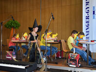Den musikalischen Auftakt bildete der Unterstufenchor unter der Leitung von Herrn Edrich. Nach der Begrüßung durch Frau Diehl luden ihre Schülerinnen und Schüler der Klasse 6e die Sextanerinnen und Sextaner zu einer märchenhaften Zeitreise ein.