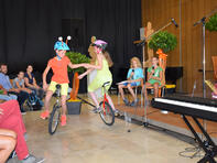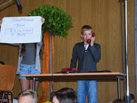 Die Klasse 6a setzte – unter der Regie von Frau Egeler-Wittmann – Erich Kästners Gedicht „Das verflixte Telefon“ szenisch um und begeisterte damit – ebenso wie Benny Heinze, der blind Klavier spielte – das Publikum.