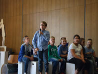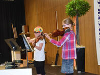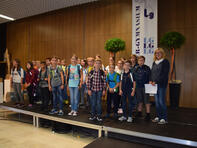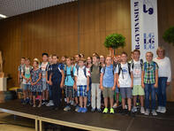 Der spannendste Moment war sicherlich gekommen, als die Schulanfänger von ihren Klassenlehrerinnen (Frau Hagenbucher, Frau Anstädt, Frau Schleifer und Frau Schreiner) aufgerufen wurden, um zur ersten Schulstunde aufzubrechen. Nach einem ersten Klassenfoto verließen die vier neuen Klassen unter Applaus die Aula, um ihren neuen Klassensaal kennen zu lernen. Zurück blieben die Eltern, die nach einigen Informationen durch die Orientierungsstufenleiterin, Frau Beimborn, und der Begrüßung durch den Schulelternsprecher, Herrn Stein, bei einer Tasse Kaffee und einem Stück Kuchen (vorbereitet durch den SEB) entspannen konnten.