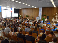 Der spannendste Moment war sicherlich gekommen, als die Schulanfänger von ihren Klassenleitern /Klassenleiterinnen aufgerufen wurden, um zur ersten Schulstunde aufzubrechen. Nach einem Klassenfoto verließen die fünf neuen Klassen unter Applaus die Aula, um ihren Klassensaal kennenzulernen Zurück blieben die Eltern, die nach einigen Informationen durch die Orientierungsstufenleiterin, Frau Beimborn, und der Begrüßung durch den Schulelternsprecher, Herrn Stein, bei einer Tasse Kaffee und einem Stück Kuchen (vorbereitet durch den SEB) entspannen konnten.