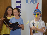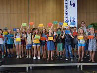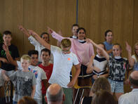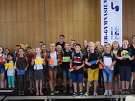 Die Schulleiterin, Frau Diehl, begrüßte die 119 Mädchen und Jungen u.a. mit den Worten:“Hier im LG geht es schon mal zu wie im Dschungel“, denn es ist nicht einfach sich in den vielen Gängen und Räumen zurechtzufinden. Auch gibt es zuweilen recht ungewöhnliche „Dschungelbewohner“ unter den Lehrern und Schülern. Dies stellte der, die Rede der Direktorin einrahmende, Orientierungsstufenchor unter Leitung von Herrn Edrich mit dem Auftritt des „Rap-Huhns“ sofort unter Beweis. Ein bisschen Licht brachte die 6C unter Leitung von Frau Schleifer in den Dschungel, indem sie vorführte, wie so eine Englischstunde am LG aussehen kann. Die Mädchen der neu gegründeten Cheerleader-AG mit Trainerin Frau Funk hatte ihre Premiere, indem sie bewunderungswürdige Akrobatik auf die Bühne der Aula brachte und stürmischen Beifall erhielt. Ein Violinduo von Amelie Kleber und Valerie Philippsen rundete die sehr abwechslungsreiche Feierstunde ab.