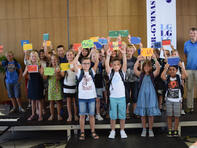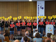 so rief es das Tutorenteam des Leininger-Gymnasiums den frisch gebackenen Schülerinnen und Schülern der fünften Klassen mit ihren Eltern und Angehörigen zu, welche am 1. Schultag (06.08.2018) die Reihen der Aula bei der Aufnahmefeier füllten. Jedes Kind erhielt ein selbstgemachtes Namensschild als persönliches Willkommensgeschenk von den Mädchen und Jungen der 10ten Klassen, welche in diesem Jahr die verantwortungsvolle Tutorenaufgabe übernommen haben.
