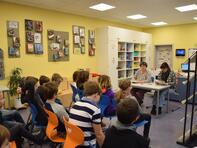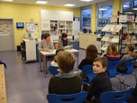 Aus in Stoffhüllen eingepackten Büchern – Cover und Angaben zu Autor und Titel waren somit nicht sichtbar – wurden von den Bibliotheksdamen spannende oder witzige Stellen vorgelesen. Dann stimmten die am Buchduell beteiligten Schüler/innen ab, welches der beiden Bücher ihnen besser gefallen hatte und in die nächste Runde kommen sollte.