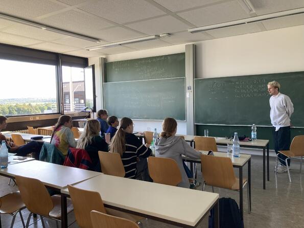 Am nächsten Tag machten sich die Teilnehmer auf den Weg durch Mainz an die Johannes Gutenberg-Universität, um im Institut für Mathematik, ihre Kurse zu wählen. Drei Dozenten stellten jeweils ein Thema vor, welches ihr Kurs behandeln würde: „Catalanzahlen“ mit Professorin Dr. Hartung, „Fehlercodes“ mit Dr. Eberhardt oder „Der Klang der Mathematik“ mit Dr. Werth.
