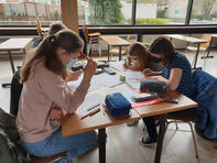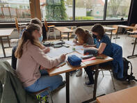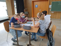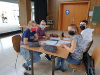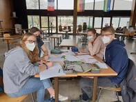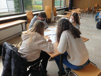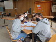 Drei motivierte Schülergruppen gingen am LG in der Aula an den Start. Vertreten waren dabei jeweils eine Gruppe aus der 9a, der 10b und der MSS 11, die unter Aufsicht von Frau Habenberger ihr Wissen auf das Papier brachten.