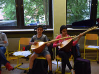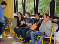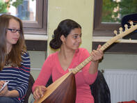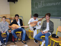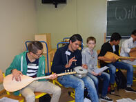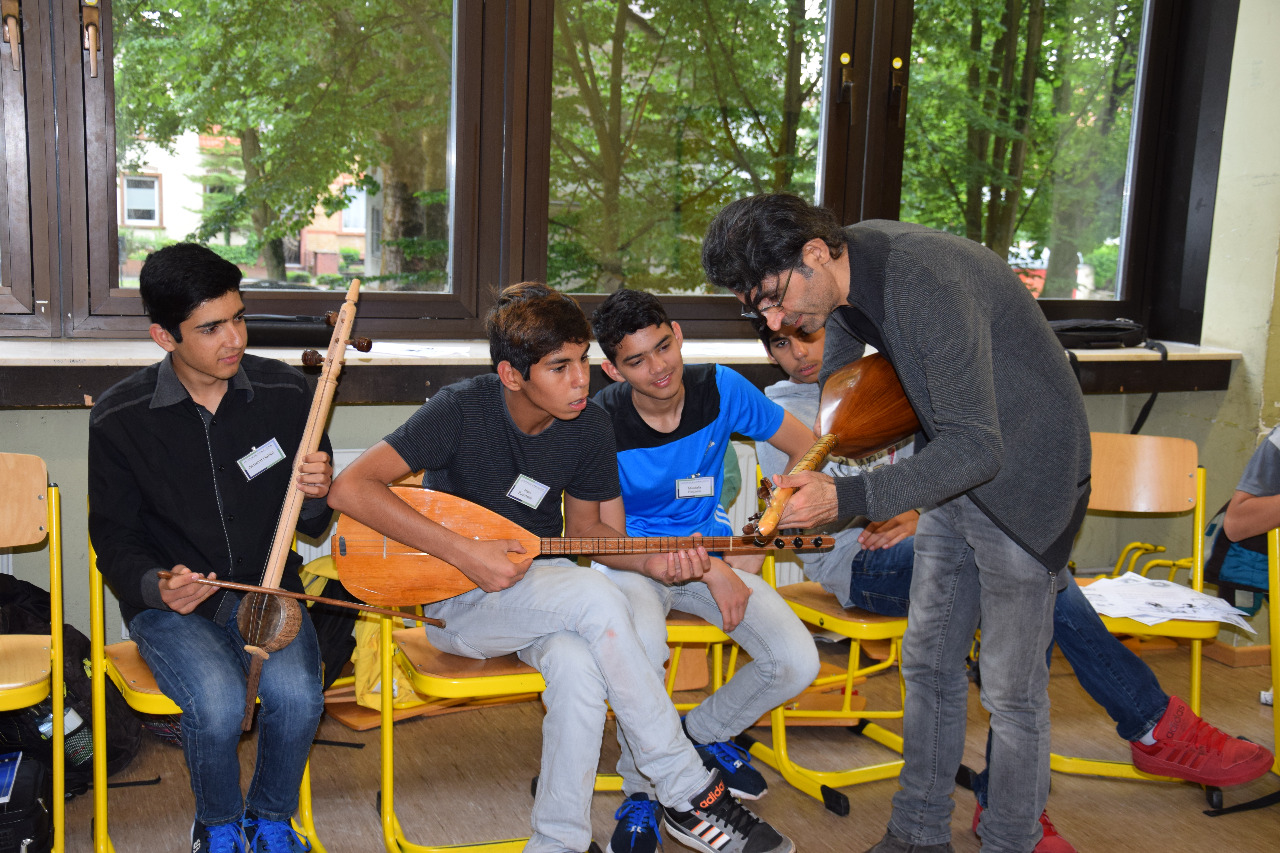 Im Laufe des Workshops konnten die syrischen und afghanischen Schüler/-innen ihren deutschen Mitschülern und Mitschülerinnen auf einer Landkarte zeigen, aus welchem Land sie flüchten mussten und auf welchem Weg sie nach Deutschland gekommen sind. Auch konnte man dabei gut erkennen, dass Orient und Okzident geografisch sehr eng miteinander verbunden sind. Den Workshop beschloss Ali Ungan eindrucksvoll mit einigen Liedern, zu denen er sich auf der Saz begleitete. Wie positiv der Workshop bei den syrischen und afghanischen Jugendlichen angekommen war, zeigte sich darin, dass Ali Ungan im Anschluss mit der Frage bestürmt wurde, ob er am nächsten Tag und in Zukunft wieder kommen würde, um sie weiter zu unterrichten.