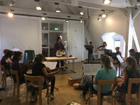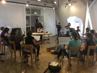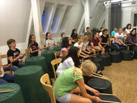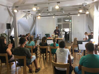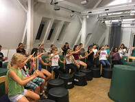 Jugendlichen in einem Percussion-Workshop bei Alex Sauerländer das