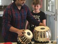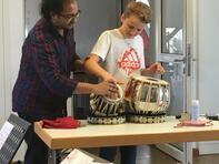 Eine spontane Einführung in das indische Tabla-Spiel gab der Klasse Abhirup Roy, ein international rennomierter Musiker, der gerade als Dozent in der Akademie zu Gast war. Alle durften sich auf den indischen Trommeln versuchen und am Ende musizierten alle gemeinsam im Klassenorchester, begleitet durch den exotischen Klang der Tablas. Eine Besichtigung des Diana-Saales im Barockschloss rundete neben einem Spaziergang am Rhein das Programm ab.