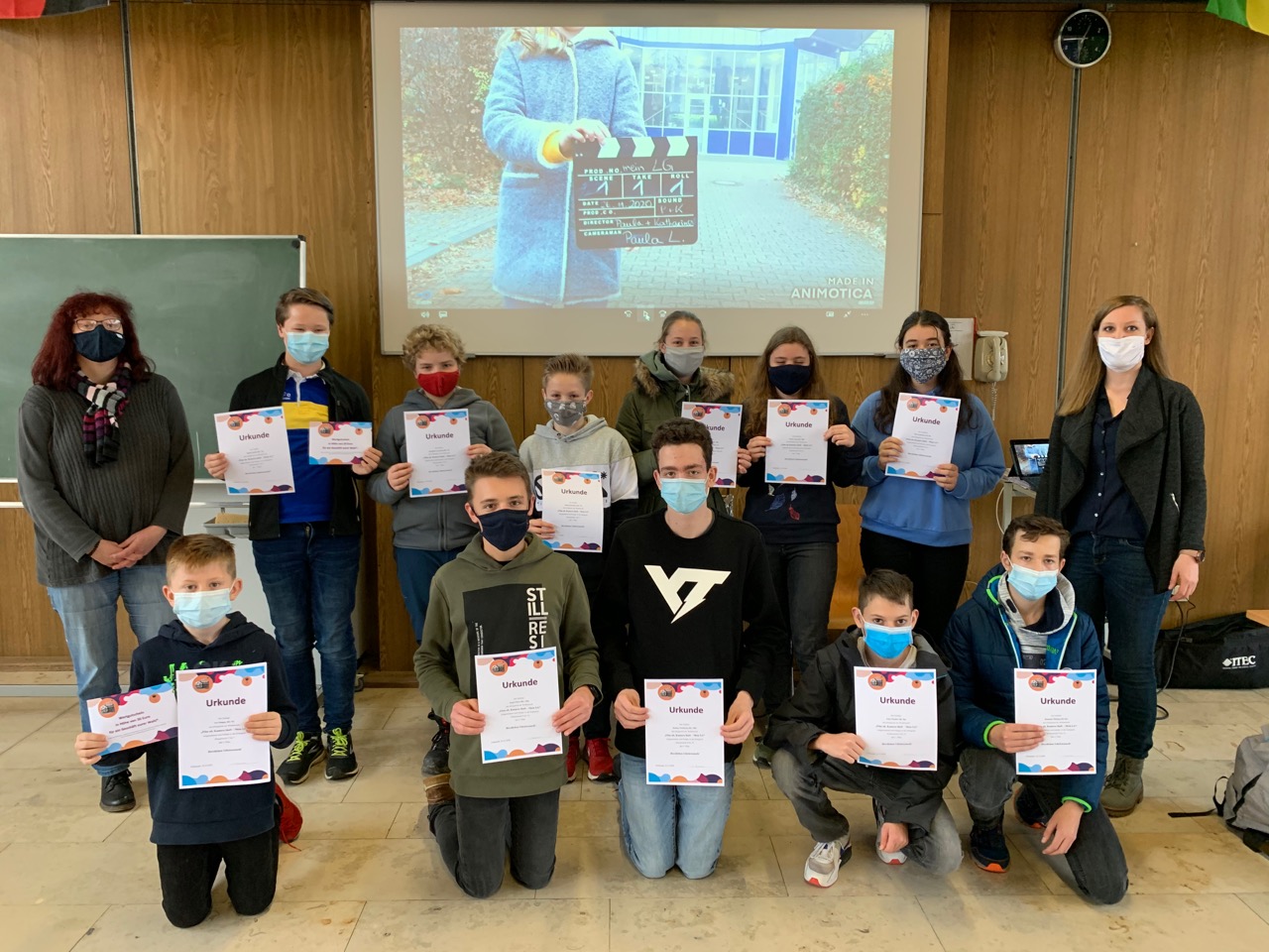 - Platz 1 der Kategorie „Klassenstufe 5-7“ belegten Julian Schreiner, Jonathan Lauritzen und Jakob Garbe mit einem sehr vielseitigen und abwechslungsreichen Videofilm. Herzlichen Glückwunsch. Der Wertgutschein hat eine Höhe von 50 Euro.