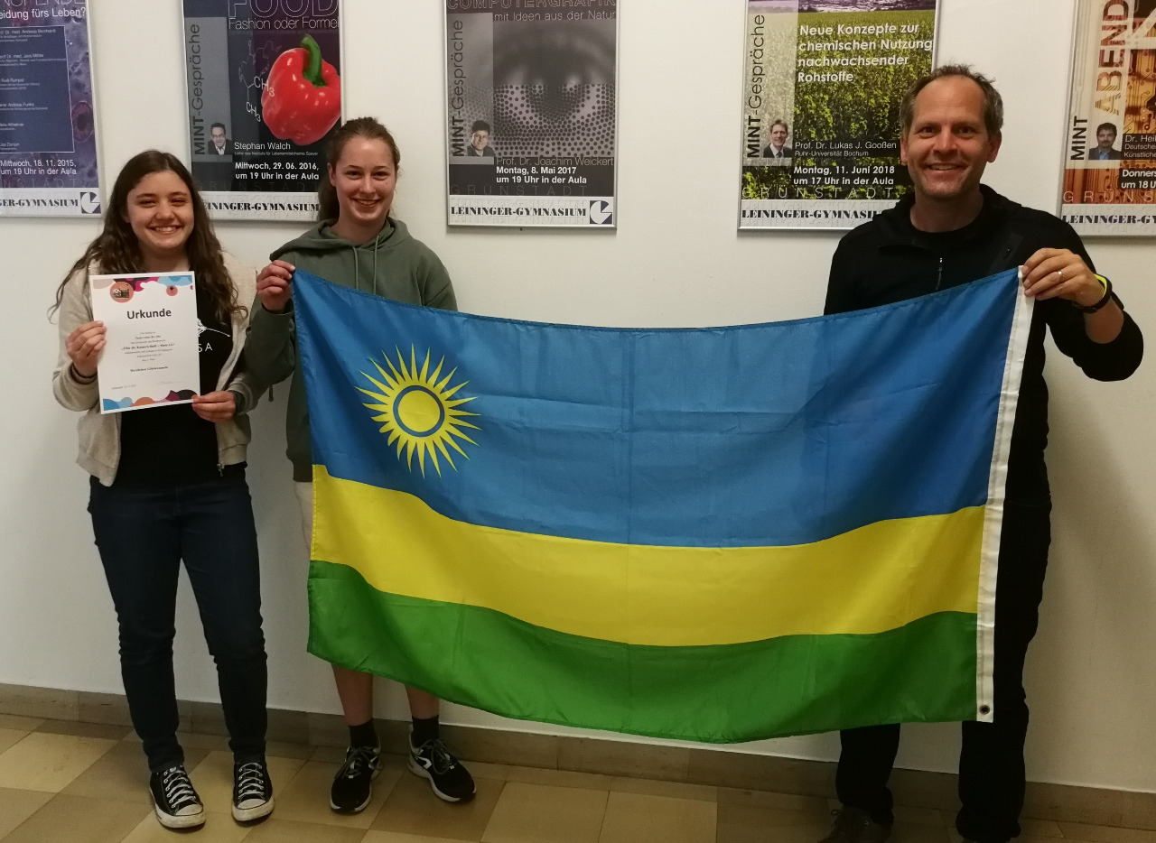 Bei der Geldübergabe begründeten beide ihre tolle Geste damit, dass sie selbst viel Spaß beim Drehen des Films hatten und ihre Freude über den Gewinn gerne teilen würden. "Die Überraschung ist euch wirklich gelungen! Vielen Dank!", freute sich Ingo Hammann, der Verantwortliche für die Ruanda-Schulpartnerschaft und erklärte den beiden Gewinnerinnen, dass damit das Schulessen für eine ruandische Schülerin für ein ganzes Schuljahr bezahlt werden kann.