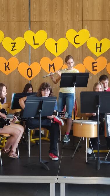 Schülerinnen und Schüler aus den 7. und 8. Klassen des Schwerpunktes Musik umrahmten unter der Leitung von Frau Silke Egeler-Wittmann die Begrüßungsworte der Schulleiterin Frau Kerstin Hanisch und der Orientierungsstufenleiterin Frau Elisabeth Beimborn. 24 junge Menschen der 10. Klassen hatten sich als Tutoren und Turorinnen für ihre neuen Schützlinge besondere Mühe gegeben: Sie begrüßten die neuen Gymnasiast/innen mit kleinen Gedichten, Erinnerungen an die eigene Einschulung und selbst gebastelten Namensschildern.