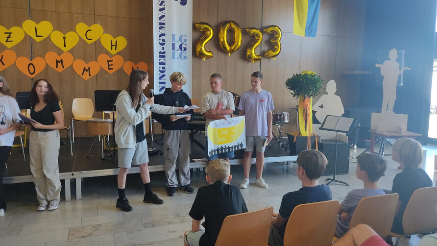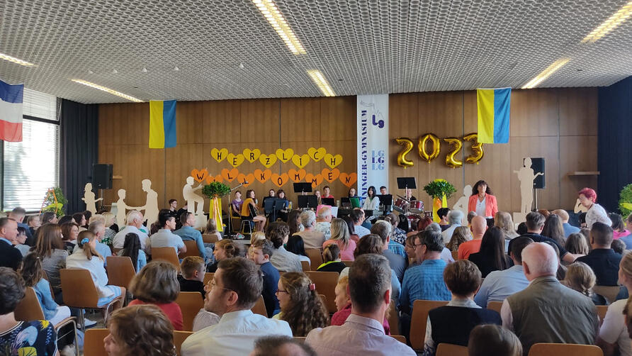 Am 04.09.2023 füllten 147 Neuankömmlinge am Leininger-Gymnasium zusammen mit ihren Angehörigen die festlich geschmückte Aula zwei mal bis auf den letzten Platz. Sechs neue Klassen mit jeweils rund 25 Mädchen und Jungen wurden in diesem Jahr in der Jahrgangsstufe 5 neu gebildet.