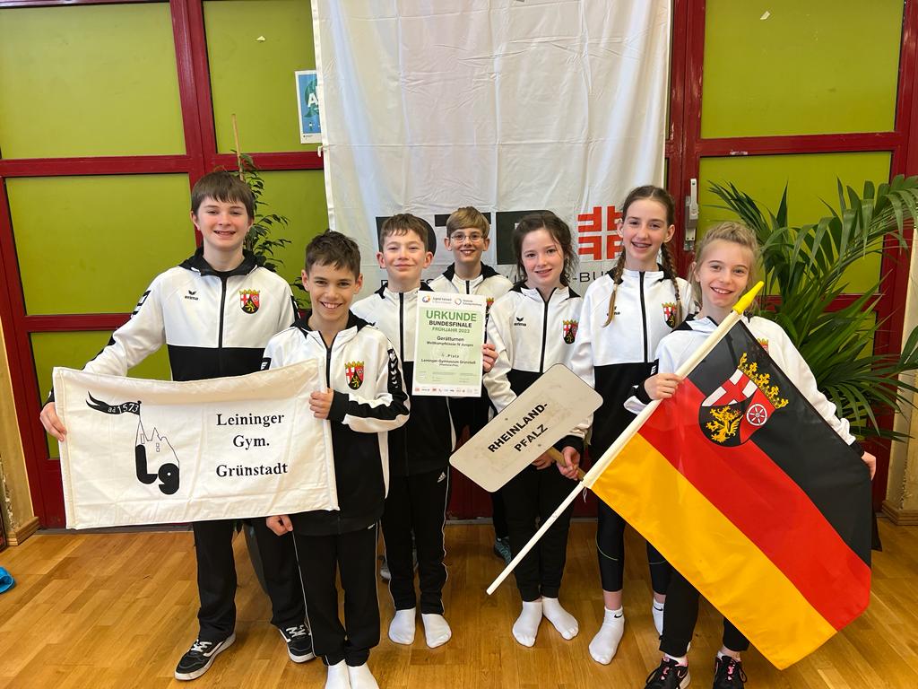 Im Vorfeld war nicht abzusehen, dass die Schüler/innen des LGs den seit Teilnahmebeginn am Bundesfinale traditionell belegten 4. Platz erreichen können, da die betreuenden Lehrkräfte Stefanie und Florian Bachmann einige Verletzungen ihrer Turner/innen und kleinere Rückschläge auch während des Wettkampfs zu beklagen hatten. Doch insgesamt haben alle Teammitglieder alles gegeben und ihr Bundesland würdig auf Bundesebene vertreten.