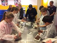 Der Mittwoch startete mit einem ausgiebigen Frühstück und einer Fahrt mit S- und U-Bahn quer durch die Stadt. In einem Escape-Room galt es nun die Teamfähigkeit der Schüler/innen beim Lösen von kniffligen Rätseln auf die Probe zu stellen und dabei das Geheimnis um Sherlock Holmes zu lüften. Dabei mussten wir einen großen Feind besiegen: die Zeit, denn für das Lösen der Aufgaben stand uns nur eine Stunde zur Verfügung. In mehreren Räumen bewiesen die Schüler/innen ihren Einfallsreichtum im Lesen von Spuren und Fährten, sie gelangten von Zimmer zu Zimmer und erledigten jede Herausforderung. Zwölf Sekunden vor Ablauf der Zeit war des Rätsels Lösung geknackt! Nach dieser nervenaufreibenden Aufgabe stärkten wir uns gemeinsam beim Pizza-Essen und genossen die Zeit bei kleineren sportlichen Aktivitäten und Vogel-Füttern vor dem Brandenburger Tor und auf der Wiese vor dem Reichstag. Am Nachmittag stand ein weiteres Highlight an: die Schokoladenwerkstatt der Rittersport. Bei einem 90-minütigen Kurs bereiteten die Schüler/innen ganz nach ihrem Geschmack ihre eigene Rittersport-Kreation mit ausgewählten Zutaten zu und gestalteten dazu eine individuelle Verpackung. Da bekam man schon vom Zuschauen Lust zum Naschen ! Der Abend endete heute frühzeitig für alle Sportler/innen, denn morgen sollte der wichtigste Tag unserer Reise anstehen, der Wettkampf-Tag.