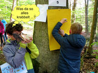Bei frühlingshaften Temperaturen gab es für die Schülerinnen und Schüler eine Menge zu entdecken Eine Vielzahl von Aufgaben zu Bäumen, Pilzen und Kleinstlebewesen mussten im Team gelöst werden