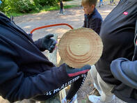 Dabei bot sich den Schülerinnen und Schülern auch die Gelegenheit, den "Fortschritt" der von ihnen im Herbst gepflanzten Bäume zu begutachten.