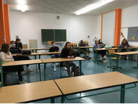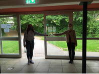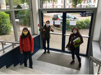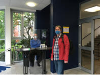 Ab 07:00 Uhr wurden die Schülerinnen und Schüler von Mitgliedern der Schulleitung am Haupteingang und am Nebeneingang des B-Baus in Empfang genommen.Die Masken des Landeswurden ausgeteilt.
