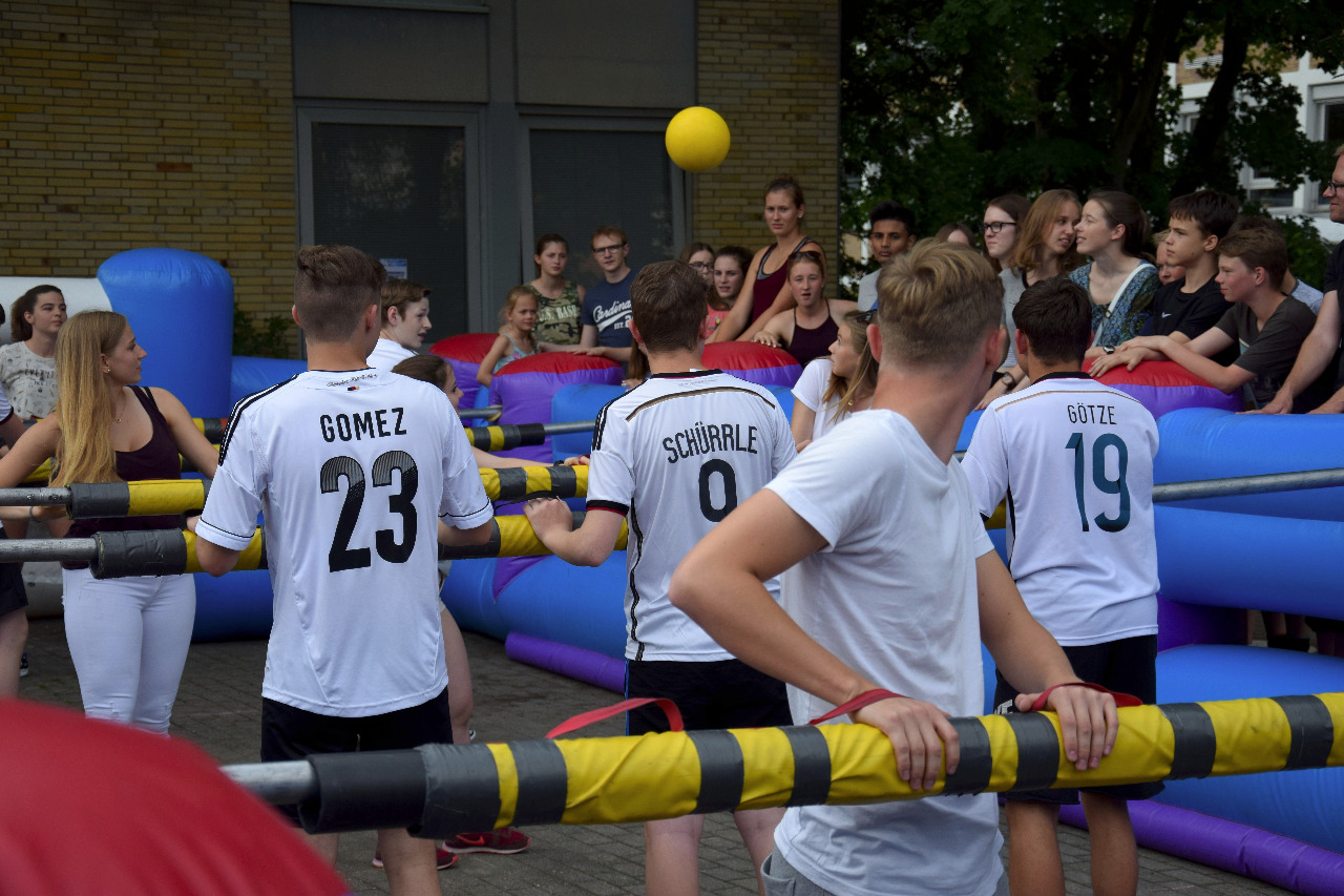 Das Fußball-Turnier erfreute sich gerade bei den Klassen 5-7 hoher Beliebtheit. Doch auch in der Oberstufe wurde hart und auf hohem technisch-taktischen Niveau - aber immer fair und ohne Schiedsrichter - um den Titel der besten Turniermannschaft gekämpft.