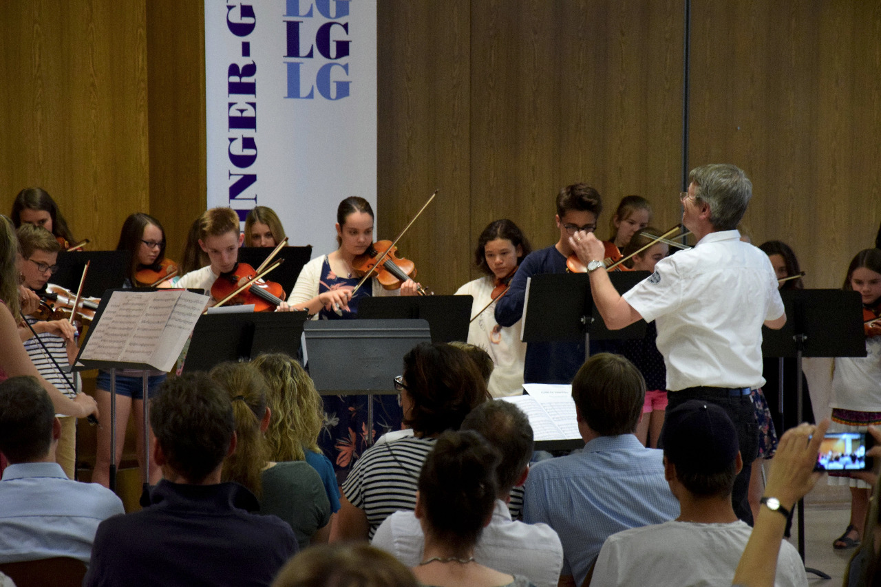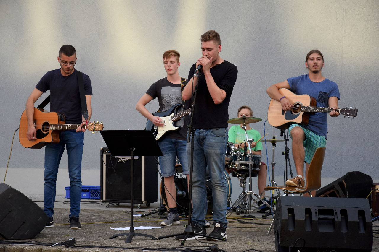 Auf der Freiluftbühne vor der großen Sporthalle wurden die Gäste durch ein zeitfüllendes Programm unterhalten. Dort spielten drei unterschiedliche Bands: die Schulband des LG sowie „Redge“ und „1618“ - auch unter den beiden zuletzt genannten aktive und ehemalige Schülerinnen und Schüler des LGs. Hinzu kam ein Auftritt des Gesang- und Gitarrenduos Amelie und Jule Lauer sowie ein Lipdub-Battle, zusammengestellt von der SV, sowie ein Tanz der 7. Klassen. Dieser Teil der Veranstaltungen wurde durch das Engagement von „Pfalz-Sound“ aus Hettenleidelheim großzügig unterstützt.