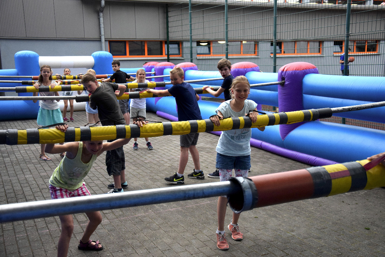 Auch beim Basketball und Menschenkicker war hohes Engagement der Sportlerinnen und Sportler zu beobachten.