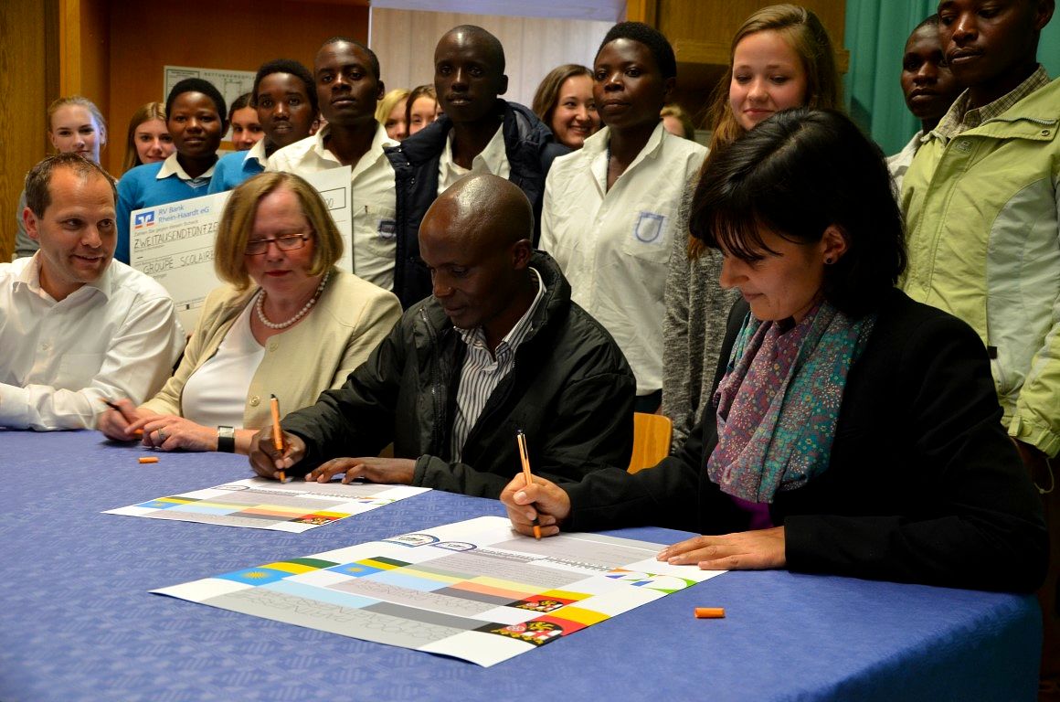 Die offizielle Bestätigung der Schulpartnerschaft durch das Innenministerium erfolgte Ende August 2014. Verschiedene Ruanda-Projekte folgten dann im neuen Schuljahr, wobei die erste Skype-Konferenz zwischen den Schülerinnen und Schülern der „Wer sonst?!“-AG, die die Ruanda-Partnerschaft betreuen, und dem Schulleiter Emmanuel Dusabimana unvergesslich bleibt. Die unkomplizierte und freundliche Art des Miteinanders motivierte zur weiteren Vertiefung der Partnerschaft - die Idee eines Besuchs war geboren.