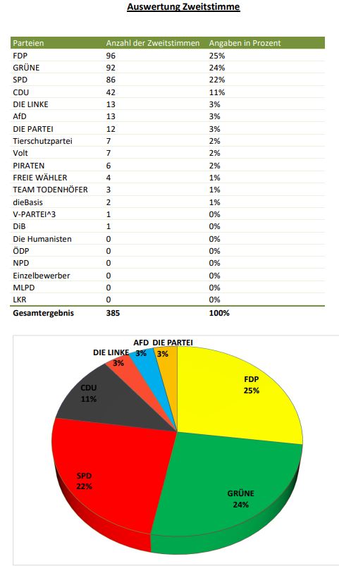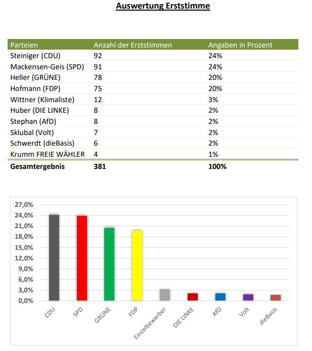 landesweiten und schulübergreifenden Juniorwahl, die dieses Jahr als Papierwahl durchgeführt wurde. Das Ergebnis wurde am