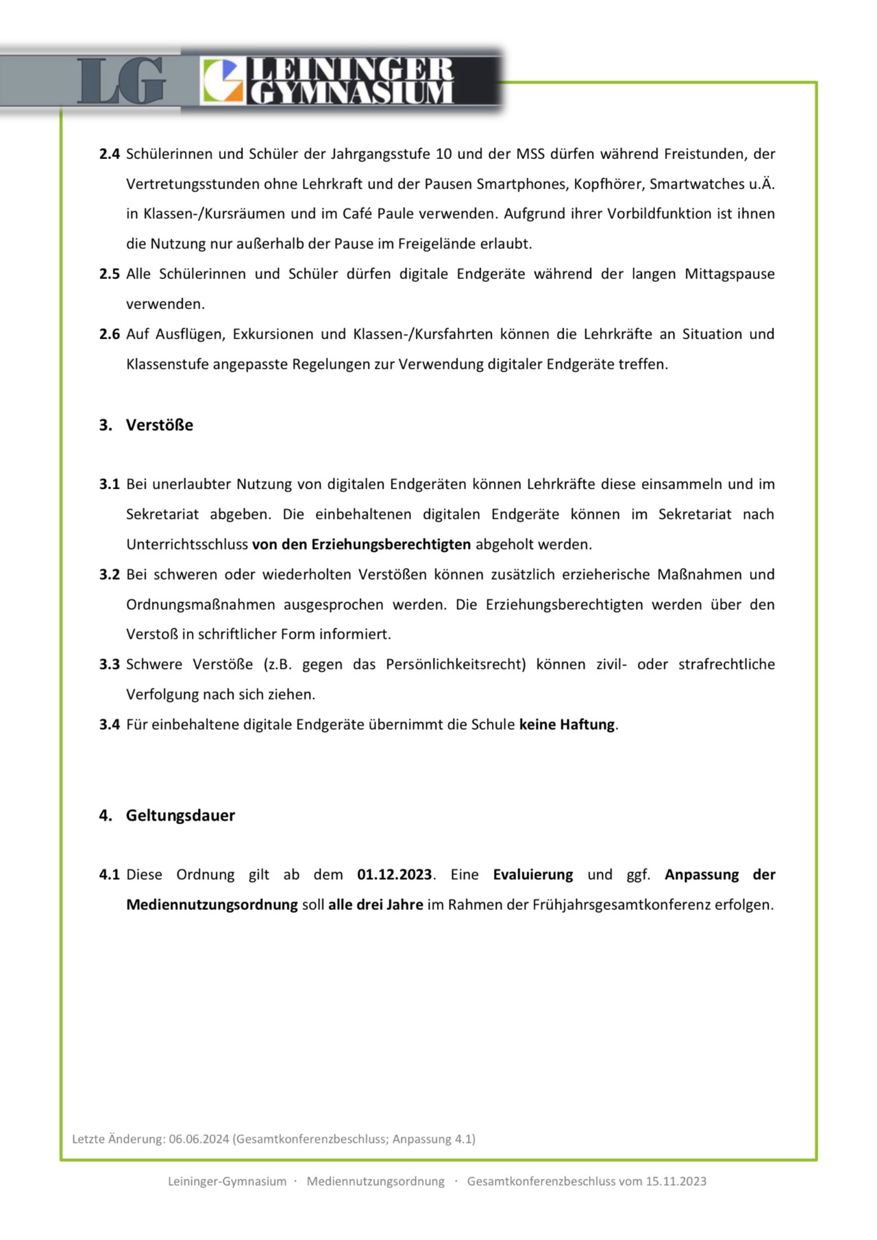 Die unten angefügte Mediennutzungsordnung gilt seit dem 1. Dezember 2023.
