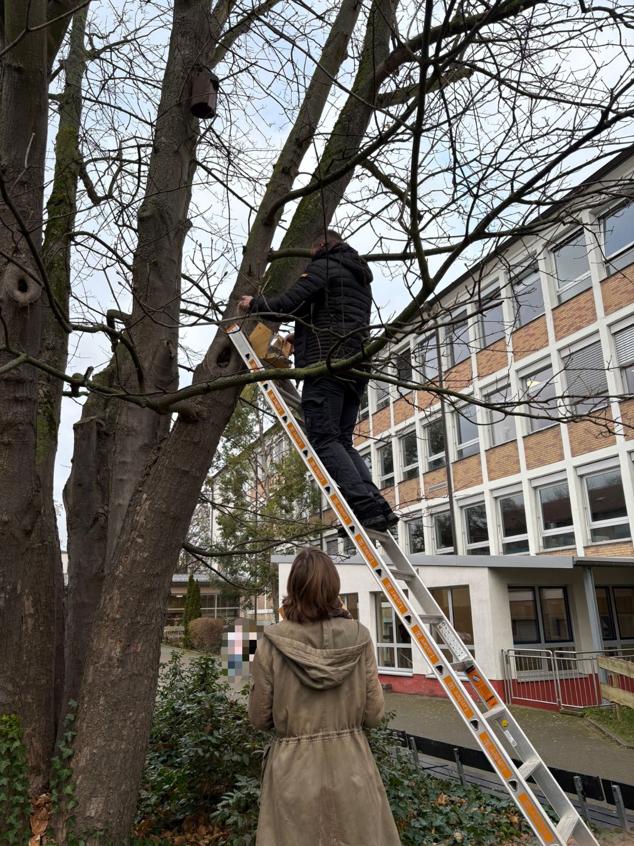 Vielleicht ist einigen eins der vier Vogelfutterhäuser auf dem großen Pausenhof aufgefallen. Mit Hilfe von Herrn Weber wurden sie am 11.12.2025 von uns, der Umwelt-AG, aufgehängt. Der Bau war eins unserer Projekte dieses Halbjahr, um unsere Schule nachhaltiger zu gestalten.