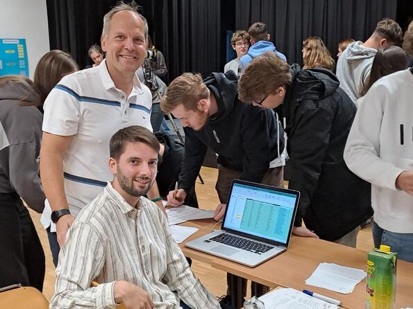 Organisiert wurde das Projekt von Ingo Hammann und Nathalie Kreis, die dabei von zahlreichen Kollegen und Kolleginnen tatkräftig unterstützt wurden (u.a. von Frau Kraul, Frau Lieser und Herrn Roth). Ein besonderer Dank gilt zudem Frau Bätz, die mit kreativen Arbeiten aus dem Kunstunterricht für eine ansprechende Dekoration sorgte sowie dem Sport-Leistungskurs von Frau Sund, der den Aufbau unterstützte.