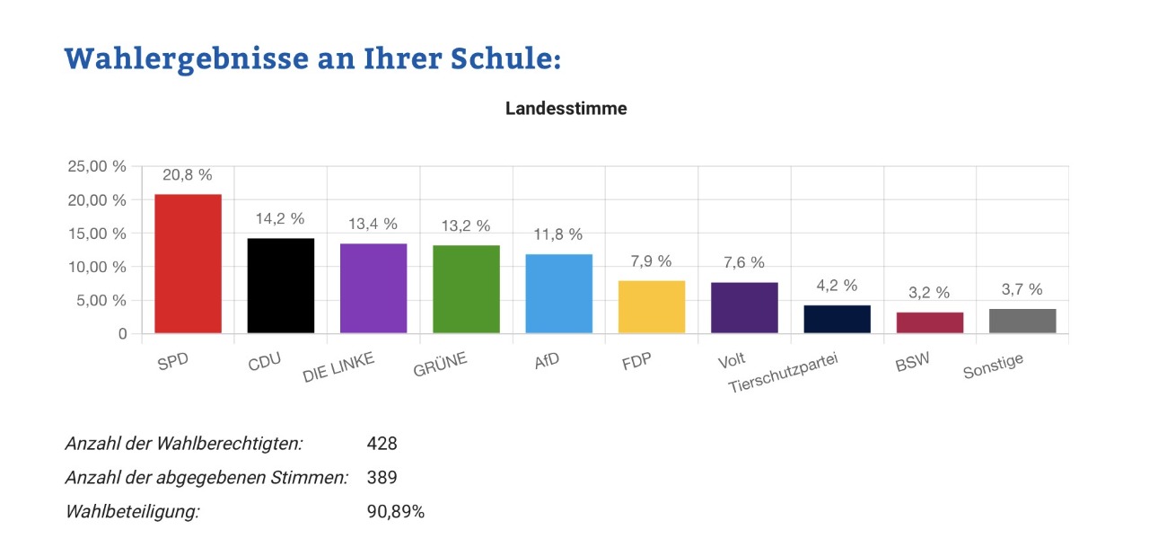 Am 18./19. März war es wieder soweit. Am Leininger-Gymnasium konnten die Schülerinnen und Schüler an der Juniorwahl parallel zur Landtagswahl teilnehmen. Die Juniorwahl an unserer Schule ist insgesamt sehr gut verlaufen und war ein voller Erfolg. Dank der Organisation der Sozialkunde Leistungskurse 11 und 12 hatte jede Schülerin und jeder Schüler der Klassen 9 bis 12 die Chance eine Stimme abzugeben und einen Teil zur Demokratie beizutragen. Besonders erfreulich war die hohe Wahlbeteiligung von über 90%, die zeigt wie groß das Interesse der politischen Verantwortung an unserer Schule ist. Insgesamt war die Juniorwahl ein wichtiger Beitrag zur politischen Bildung an unserer Schule.